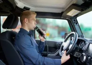 Los conductores deberán soplar por una boquilla personal al alcoholímetro para proporcionar una muestra de aliento, en caso de resultado negativo muestra las instrucciones al conductor para que proceda con el encendido, si es positivo el vehículo no encenderá.